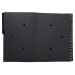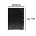 Copertina in cartone riciclato rigido 1.3 mm e tasti stampati. Interno in carta riciclata nera 270 g/mq con 2 fori per visualizzare il contenuto. Formato 25x33 cm per documenti A4